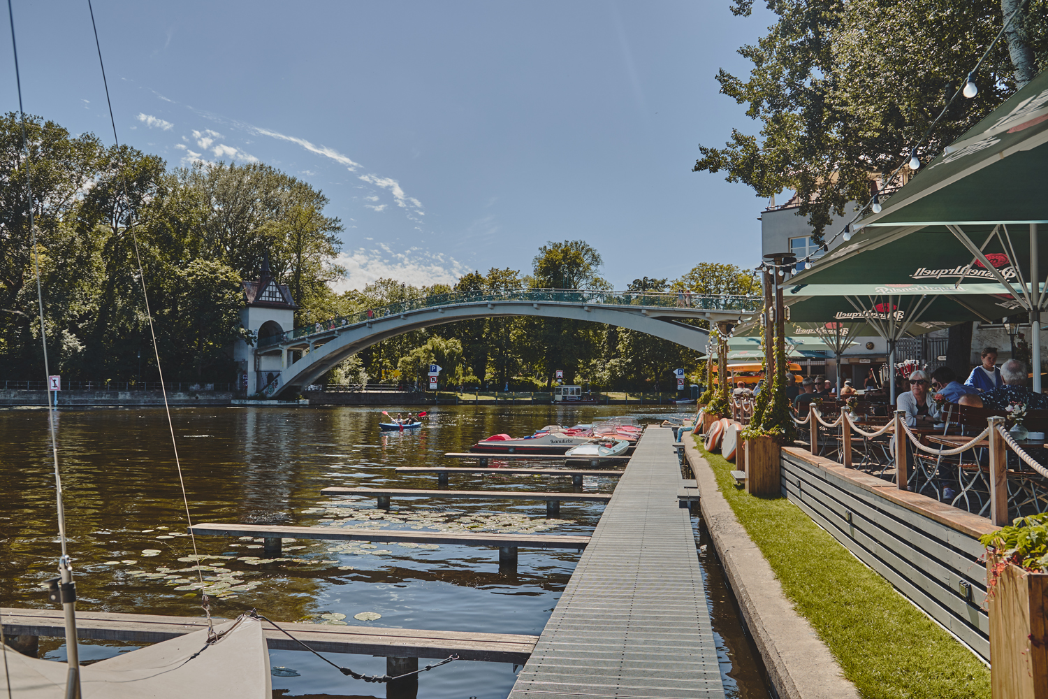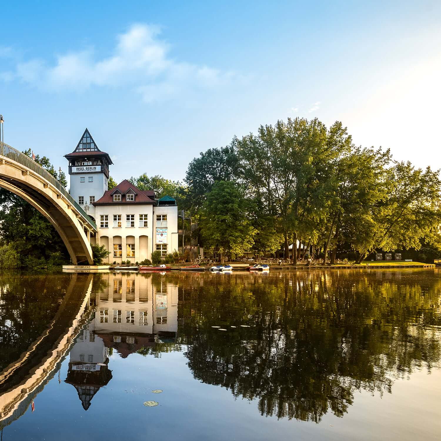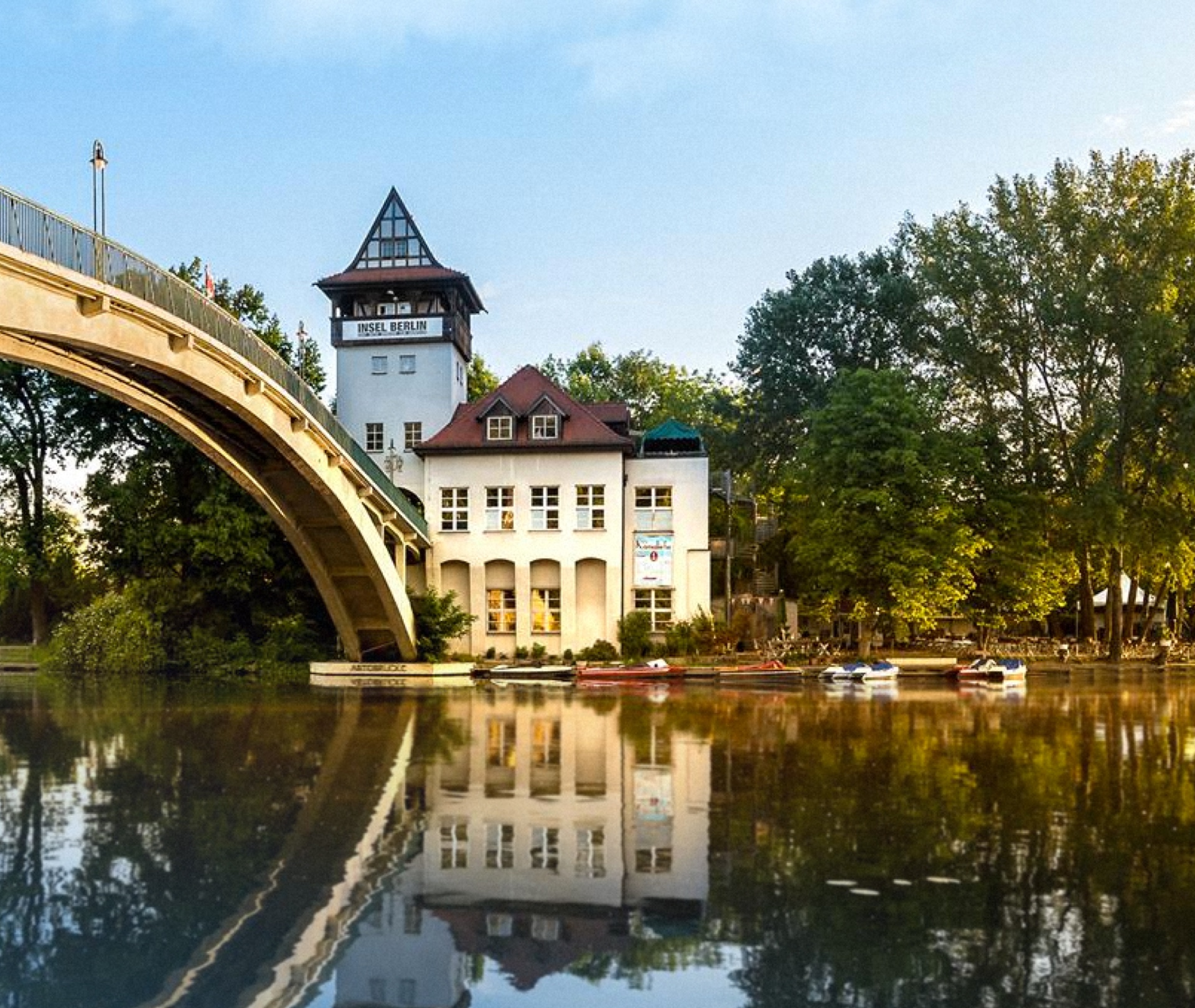 Der Inselgarten ist bei gutem Wetter, für Kulturveranstaltungen und am Wochenende geöffnet. Eine breite Getränkeauswahl, regionale Speisen, Sonne mit Spreeblick.
